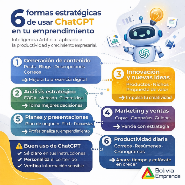 ChatGPT es una herramienta estratégica que puede convertirse en un aliado clave para emprendedores, especialmente en contextos donde los recursos son limitados y la competencia es alta.