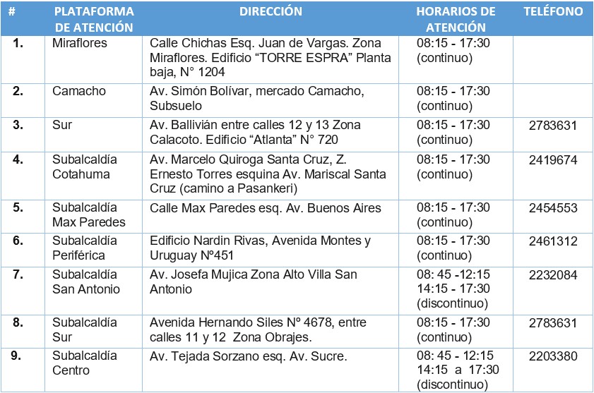 Plataforma de atención ciudadana de la Subalcaldía Macrodistrital, registrando los datos de la solicitud y adjuntando los requisitos digitalizados, posteriormente se verificará los antecedentes y se dispondrá la inspección de verificación.