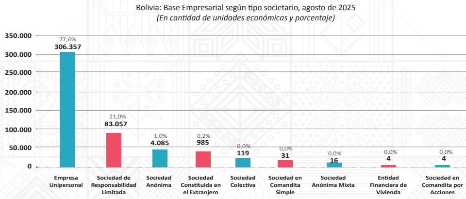 La base empresarial de Bolivia registra, hasta agosto de este año, más de 394.000 unidades económicas, informó este sábado el Ministerio de Desarrollo Productivo y Economía Plural.