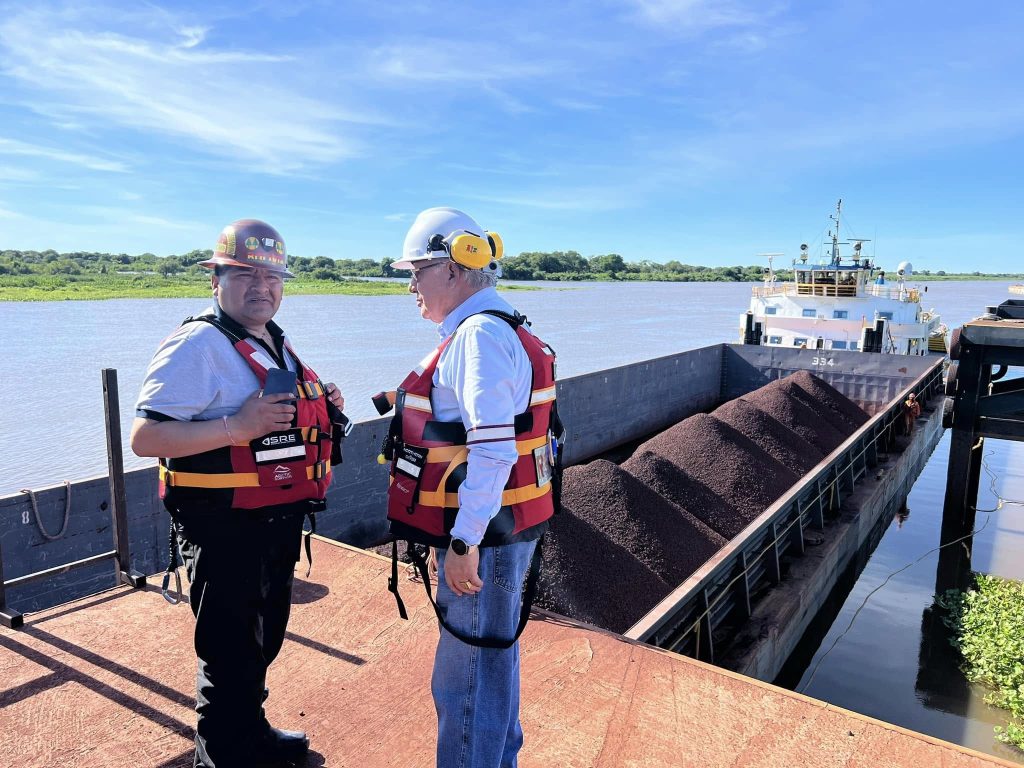 En presencia del ministro de Minería y Metalurgia, Alejandro Santos, y otras autoridades, el domingo, en la terminal de Puerto Busch (Santa Cruz) un convoy de 12 barcazas cargó en cada una alrededor de 2.000 a 2.300 t de este mineral, con destino a dicha siderúrgica en Argentina.