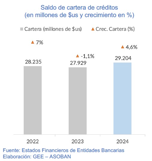 Al cierre de 2024, el sector bancario registró crecimiento en cartera de créditos y depósitos alcanzando niveles históricamente altos. Su fortaleza, solidez y capacidad de resiliencia, se sustentan en un patrimonio superior a los 3.100 millones de dólares, producto de la continua reinversión de utilidades.
